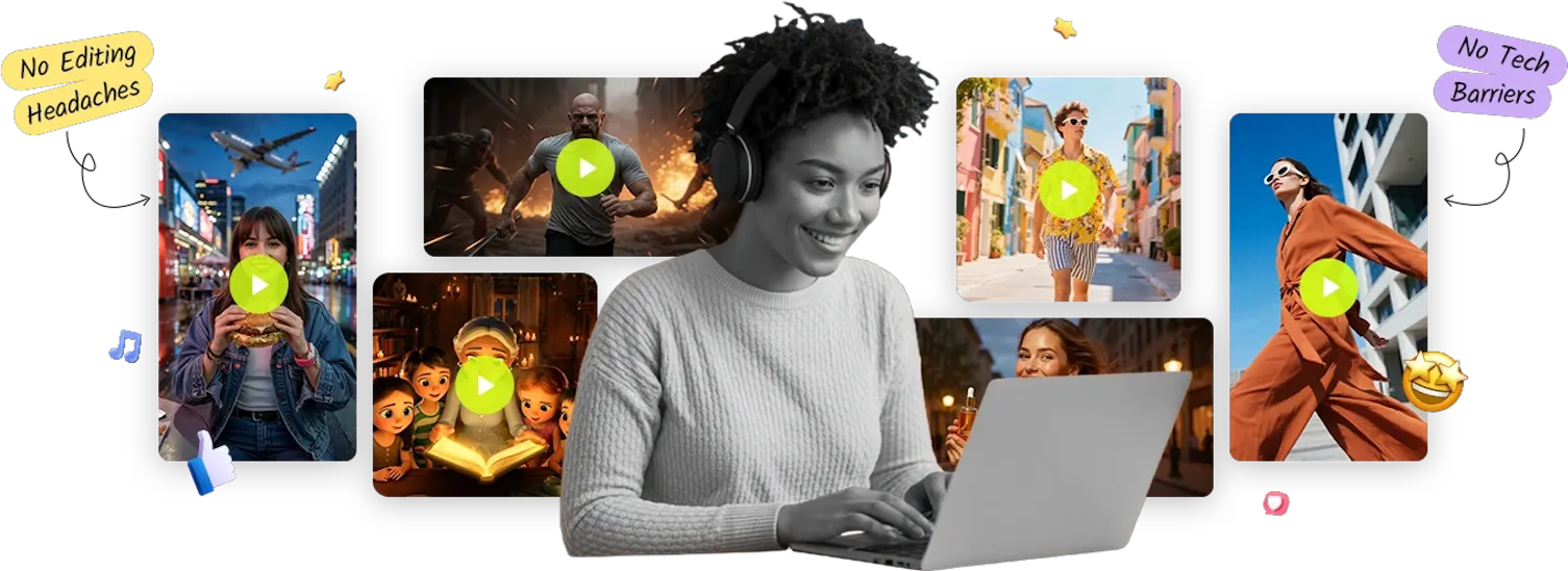 From Video, Voiceover, Animations, Avatars, Arts, Graphics, Images, Social Media Posts, Blog Articles, Video Scripts, & More…