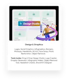 - Clever AI Design Studio – A Canva-style drag-and-drop builder to design social media graphics, ads, banners, infographics & logos in minutes.