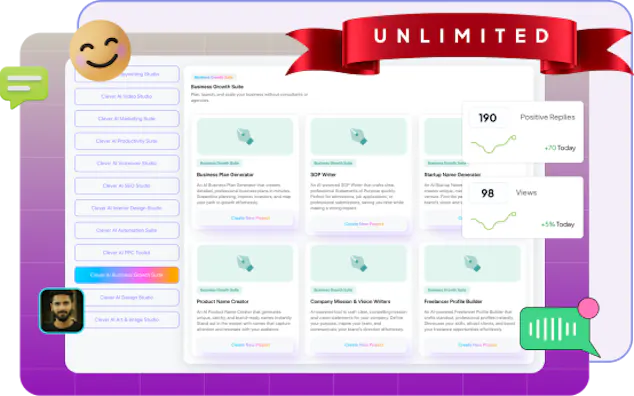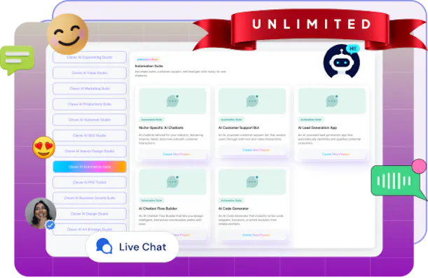 - Unlimited Clever Ai Studio Automation & Chatbot Studio — Deploy Unlimited Chatbots, Support Bots, Lead-gen Flows, And Smart Automation Systems — Scale Operations Without Limits.